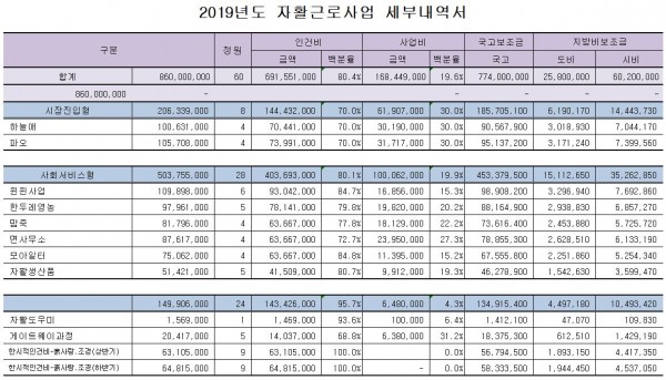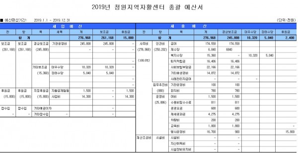충북청원지역자활센터 2018년 결산서 및 2019년도 예산공고