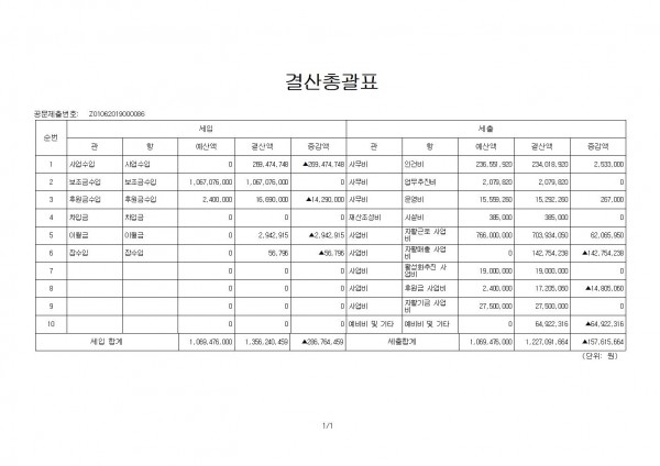 우리 센터는 사회복지법인 및 사회복지시설 재무·회계규칙 제10조 4항, 제19조 2항에 의거 2018년 결산서 및 2019년 예산을 붙임과 같이 공고합니다.