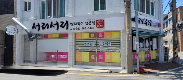 한편 ㈜서리서리 모충점은 6월 7일부터 9일까지 오픈이벤트로 5,500원의 멸치국수를 4,000원에 제공하며, 선착순 100명에 한하여 가정식 꼬마김밥을 제공할 예정이다.
