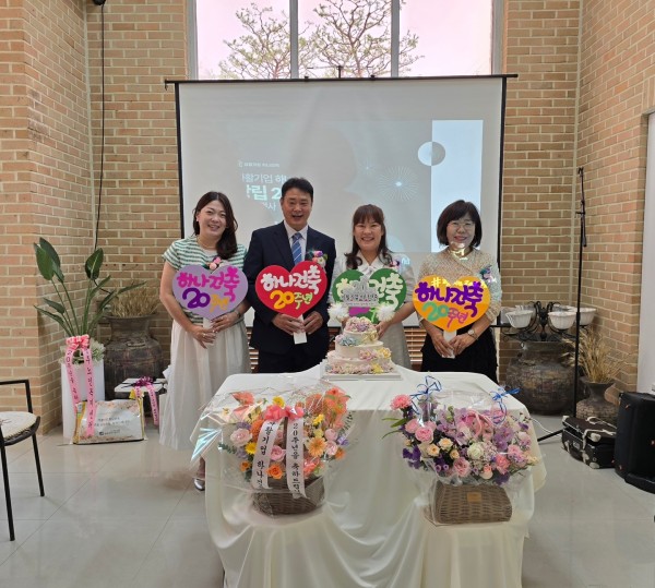 7월 12일(금) 오전 충북청주지역자활센터(이선재 센터장)와 소속자활기업인 ㈜하나건축(김현미 대표)이 대미안(청주시 청원구 공항로) 사업장에서 ㈜하나건축의 창립 20주년 기념행사를 개최하였다.