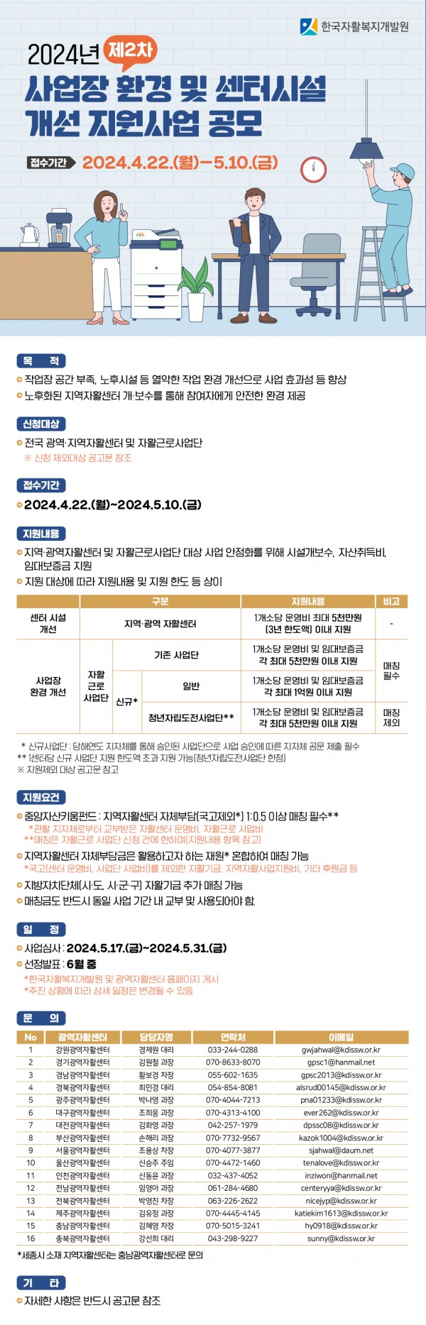 자활사업 안정화를 위한 「사업장 환경 및 센터시설 개선 지원사업」 2차 모집 실시