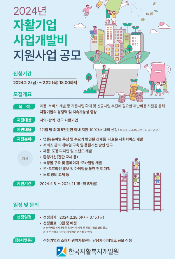 자활기업의 경쟁력 및 지속가능성 향상을 위한 「2024년 자활기업 사업개발비 지원사업」 모집